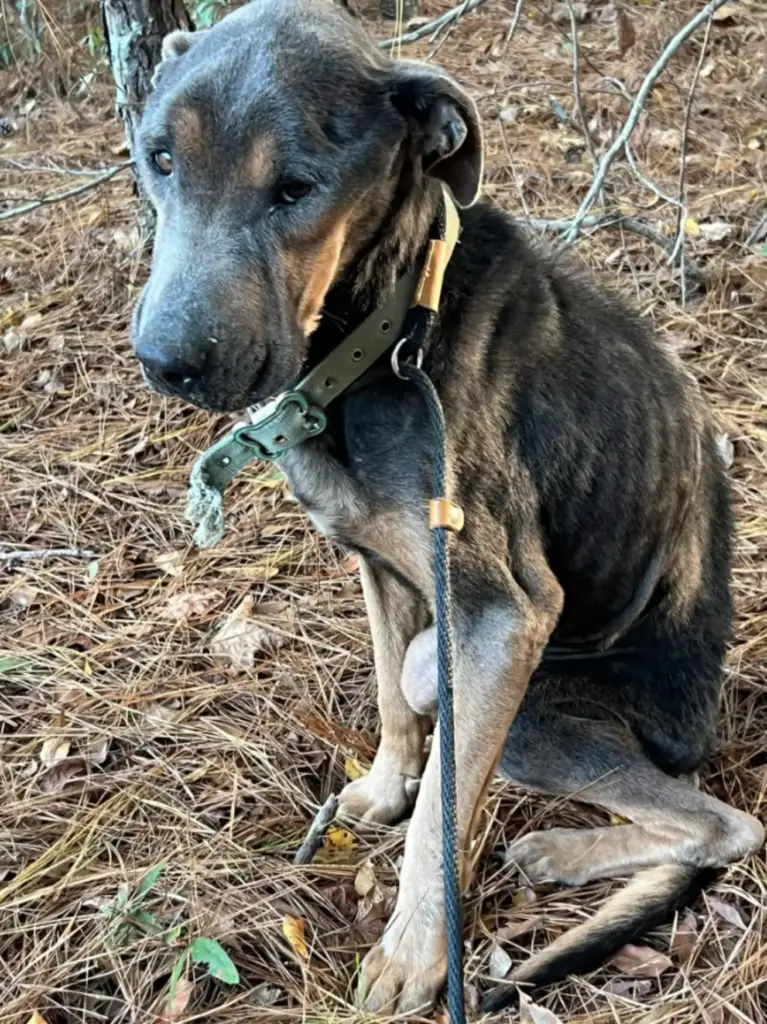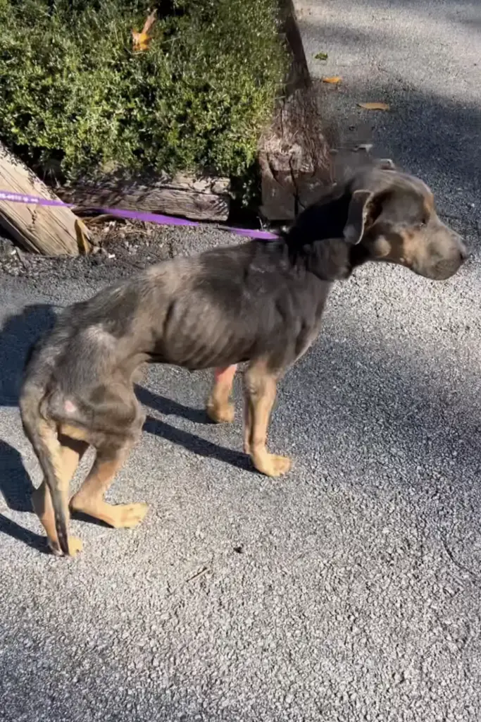 He was painfully thin, his ribs visible beneath rain-soaked fur. His body shook uncontrollably, each tremor a sign of how close hypothermia had brought him to the edge. He didn’t bark for help. He didn’t cry out.