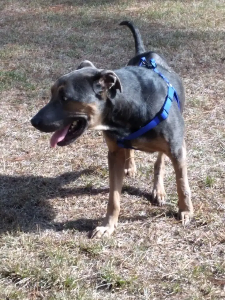 The vet estimated he was around one year old. He weighed only 41 pounds—nearly half of what a dog his size should weigh. He was anemic and heartworm positive, but too weak to begin treatment right away.