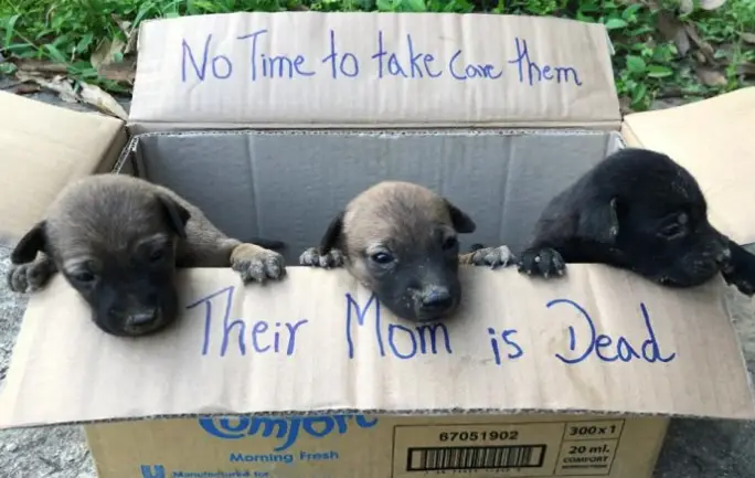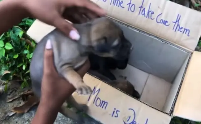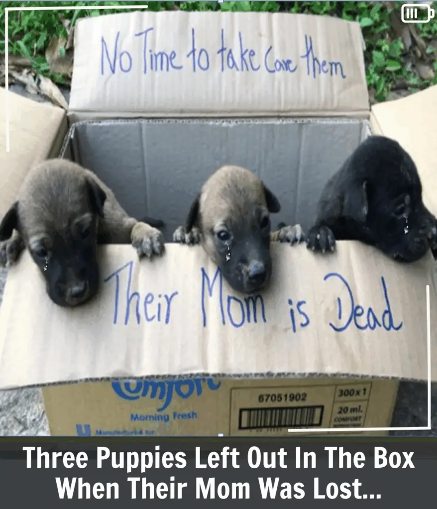 On top of the box, a heartbreaking note was scribbled. It revealed the truth: the puppies’ mother had died.