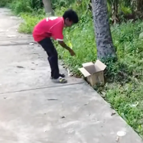 Instead, it was a soft whimpering—weak, muffled, and desperate. His curiosity turned to concern as he looked around and noticed a cardboard box by the roadside.