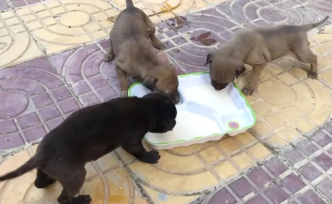 The moment they arrived, he poured some milk into a small bowl. The puppies, desperate with hunger, eagerly lapped it up.