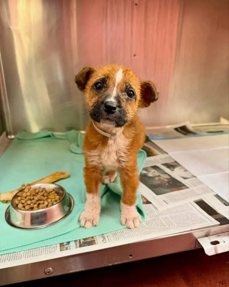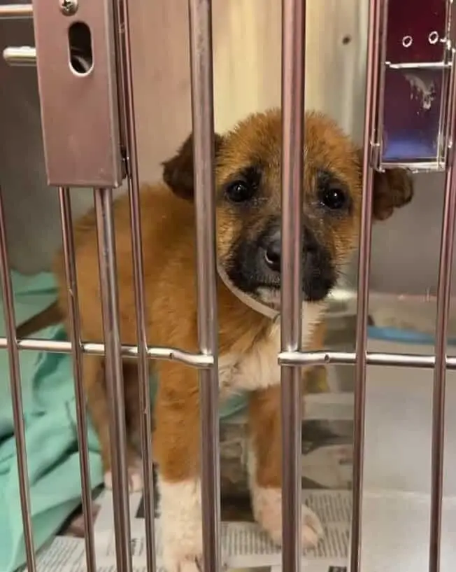 When she reached Carly’s kennel, the little pup could barely lift her head. Her eyes shimmered with a mix of fear and silent pleading. Madeline knelt beside her and extended her hand gently.