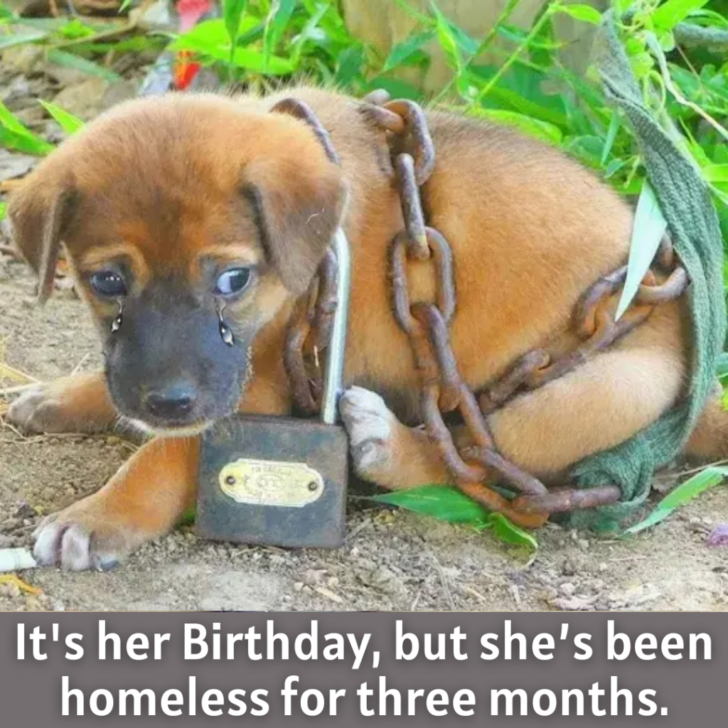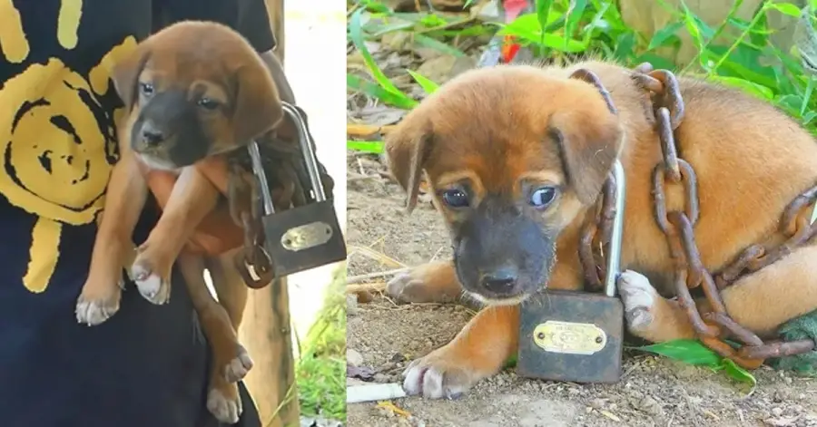 Today, the once-chained puppy is no longer hungry, scared, or forgotten.
