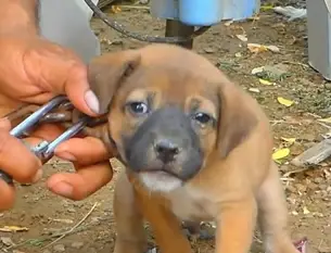 The heavy chain wrapped around her neck was meant for a large dog, not a fragile pup barely a few weeks old.