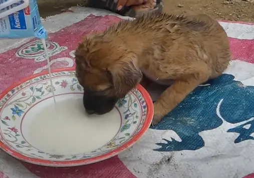 When a bowl of warm milk was placed before her, she lapped it up eagerly, her tiny tail wagging with pure joy.