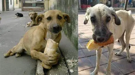 Touching Scene: Homeless Dog Joyful Reaction to a Simple Gift of Bread