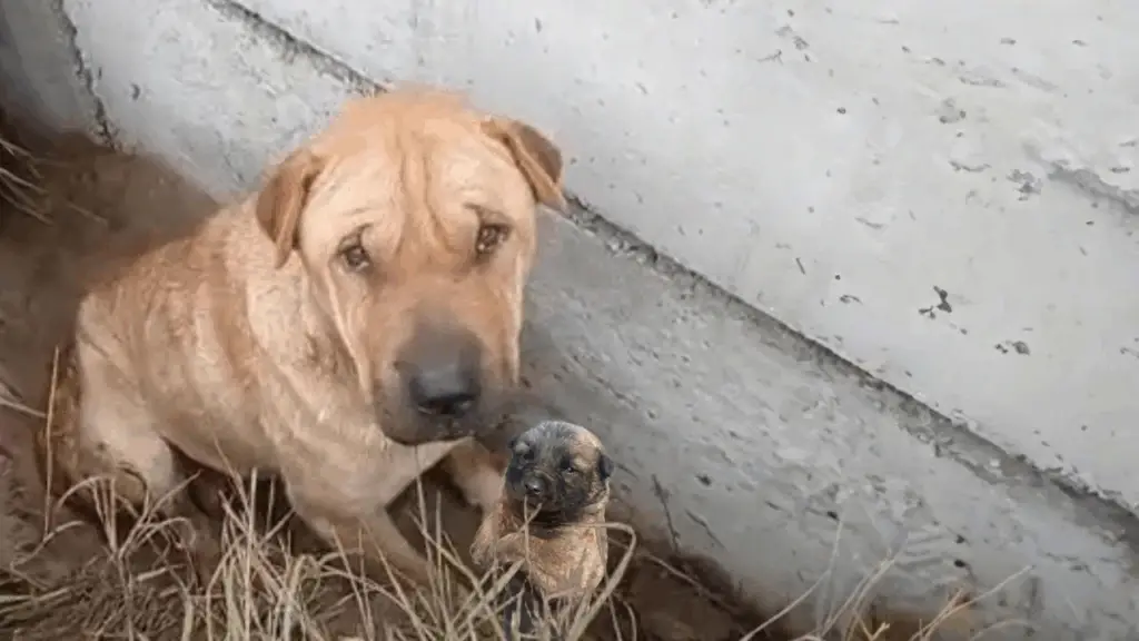 Inside it lay her final surviving puppy — tiny, fragile, and completely dependent on her.