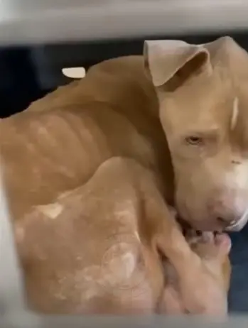 His body was painfully thin, his ribs visible through matted fur. His eyes, once full of life, stared blankly at the ground beneath him.
