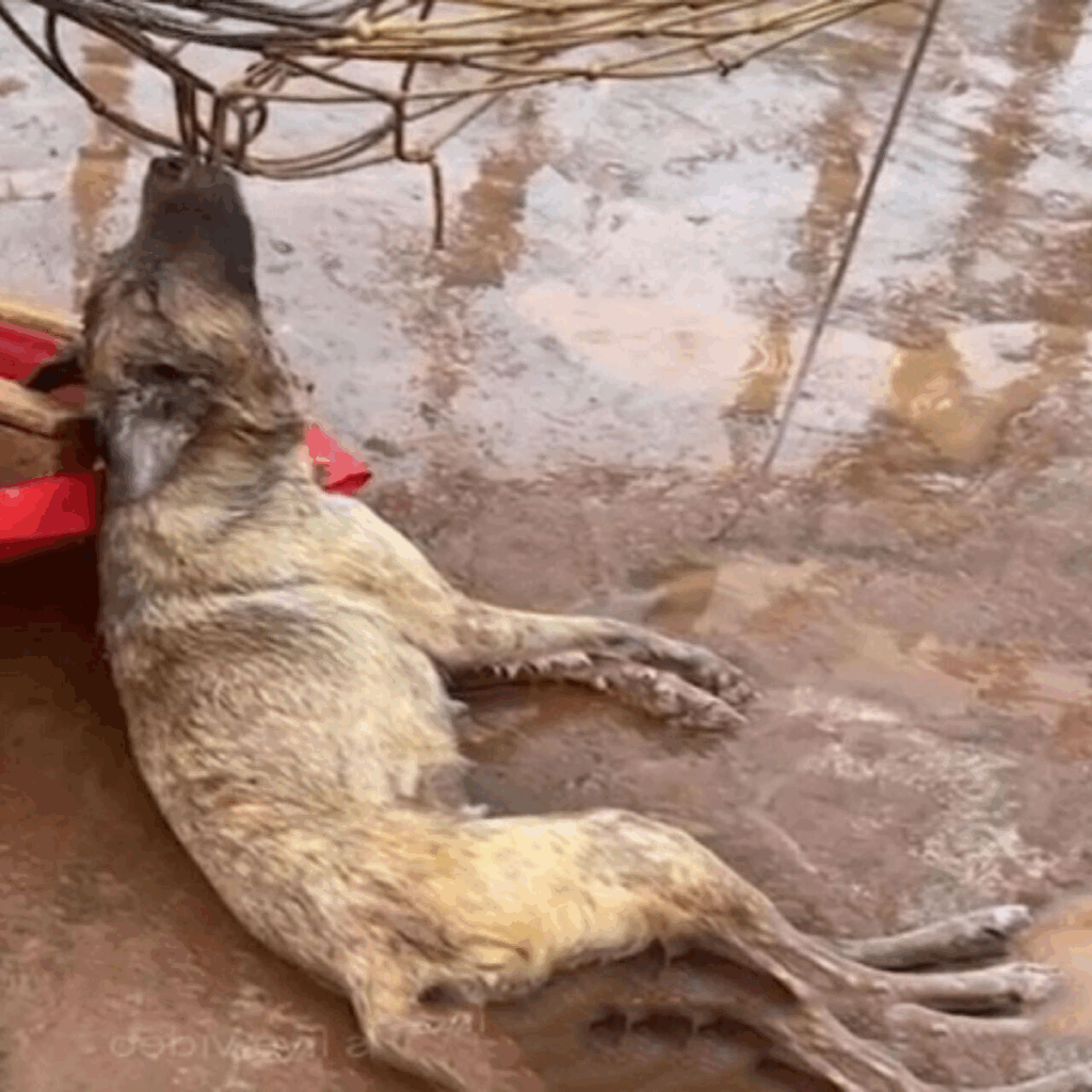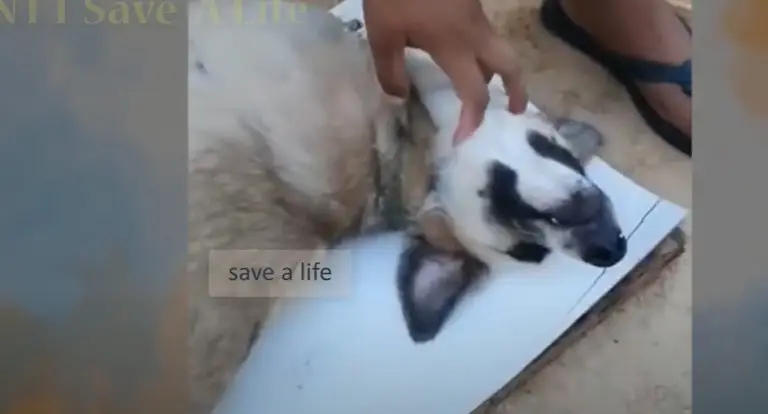 Looking at him now, with bright eyes and a wagging tail, it’s hard to believe he was once the lifeless dog lying alone on the ground.