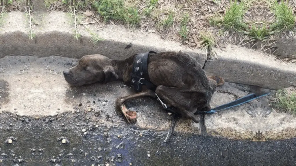 A nine-month-old puppy—frail, exhausted, and fighting to survive—rested helplessly in a ditch.