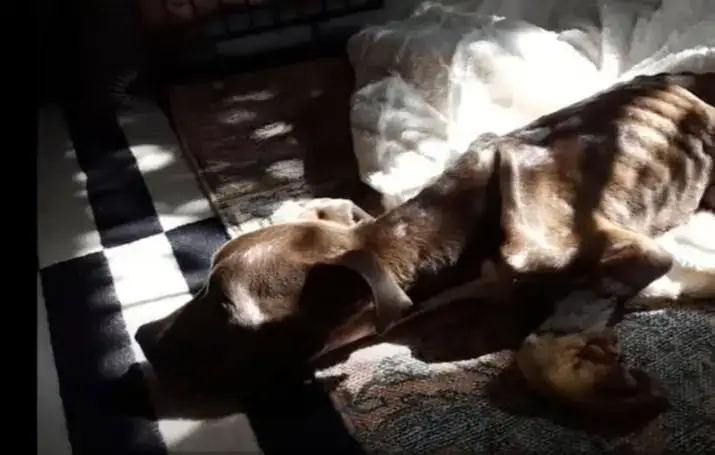 His ribs stood out sharply, his coat was painfully thin, and his eyes—once full of innocence—held only fear and defeat.