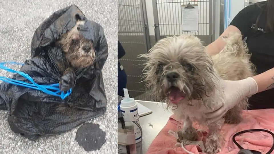 When the employees opened the bag, they were met with a heartbreaking sight—a tiny, frail 16-year-old Shih Tzu later identified as Xyla.